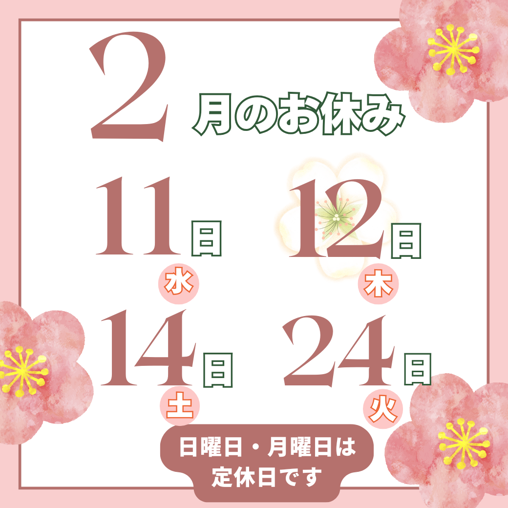 2月教室のお休みのお知らせ⛄