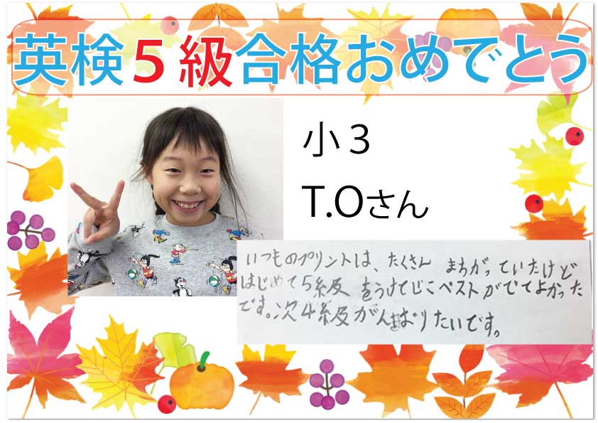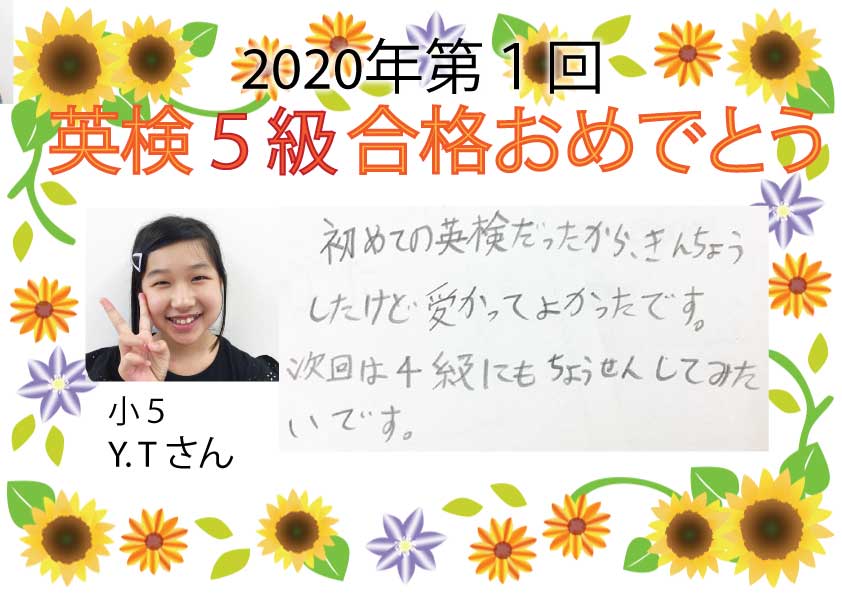 合格者からの喜びの声をご紹介します。今年はコロナ禍での受験となり、大変だったと思います。また、5級は初めての受検となるので、緊張したと思います。 たくさんの生徒たちが合格できました🎊 次の目標を掲げて、 ...