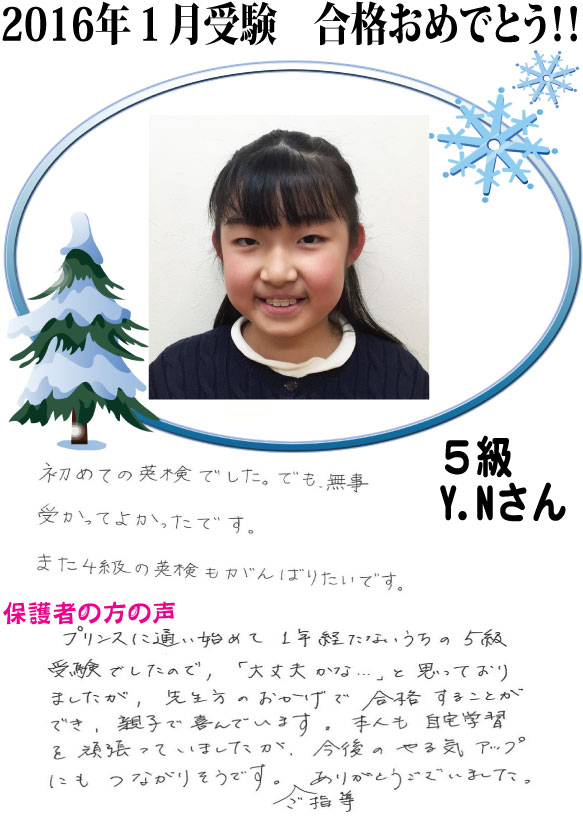 2016年第2回 英検合格者をご紹介します(^^♪中学2年生の Yumiko Takahashi さんが英検1級に合格しました!!おめでとうございます中学生の1級合格者がプリンスから誕生しました(^◇^)第3回1月に受験を ...