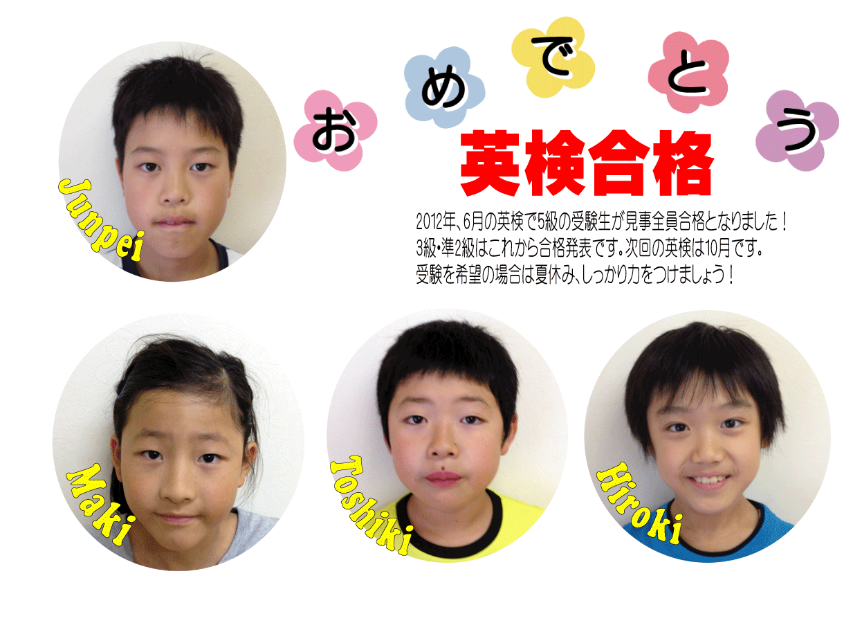 6月18日(月)・23(土)に児童英検を実施します。お申し込みは26日(土)までにお願いします。Bronze Silver Goldの3種類のリスニングテストです。受験対象は年中さんから小学3年生くらいで、英語を習い始めて1年以上のお ...