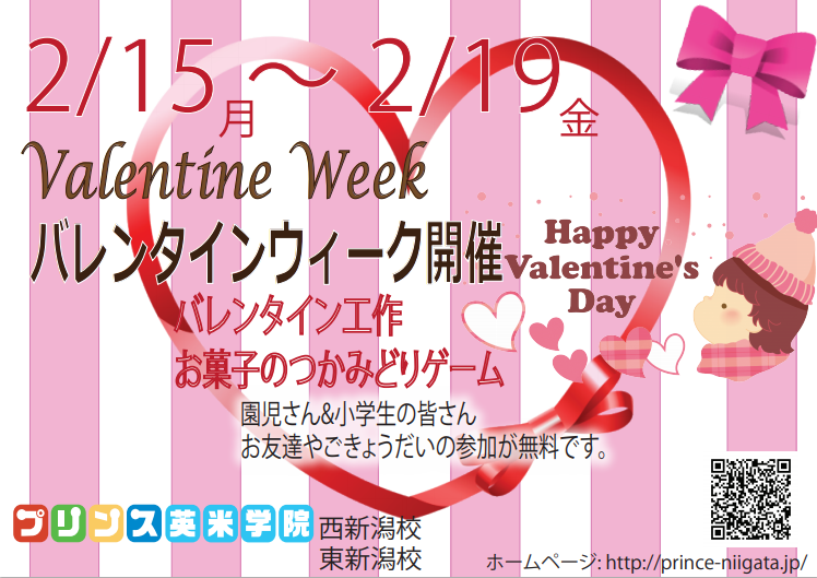大雪に悩まされた1月もまもなく終わりますね…ということで、2月のイベントのお知らせです! 2月は西新潟校、東新潟校それぞれ ♡バレンタインウィーク♡ を開催します! 英語のゲームでチョコレートをゲッ ...