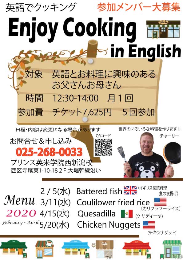 バレンタイン親子クッキング開催します!日時 2月9日 日曜日 11:30~13:30場所 プリンス英米学院西新潟校対象 英語と料理に興味のある親子参加費 1,800円(大人1名)、800円(子ども1名)3種類のサラダ ...