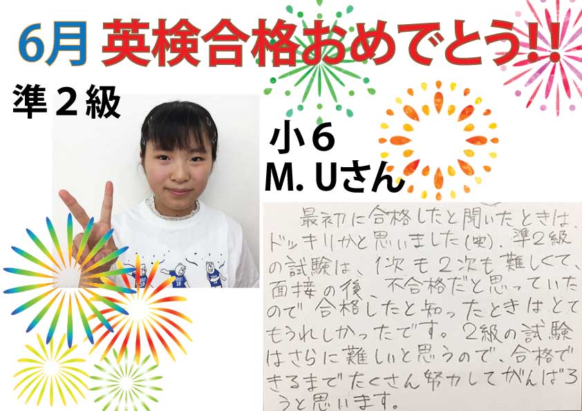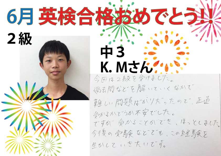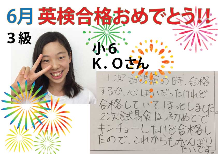 2019年度第1回 英検合格おめでとう!3級以上の合格者をご紹介します。高校受験を控えた中学3年生もいました。準2級合格後、コツコツと準備をして1年以内に2級に合格しました。小学生の準2級合格者も出ました。単語 ...