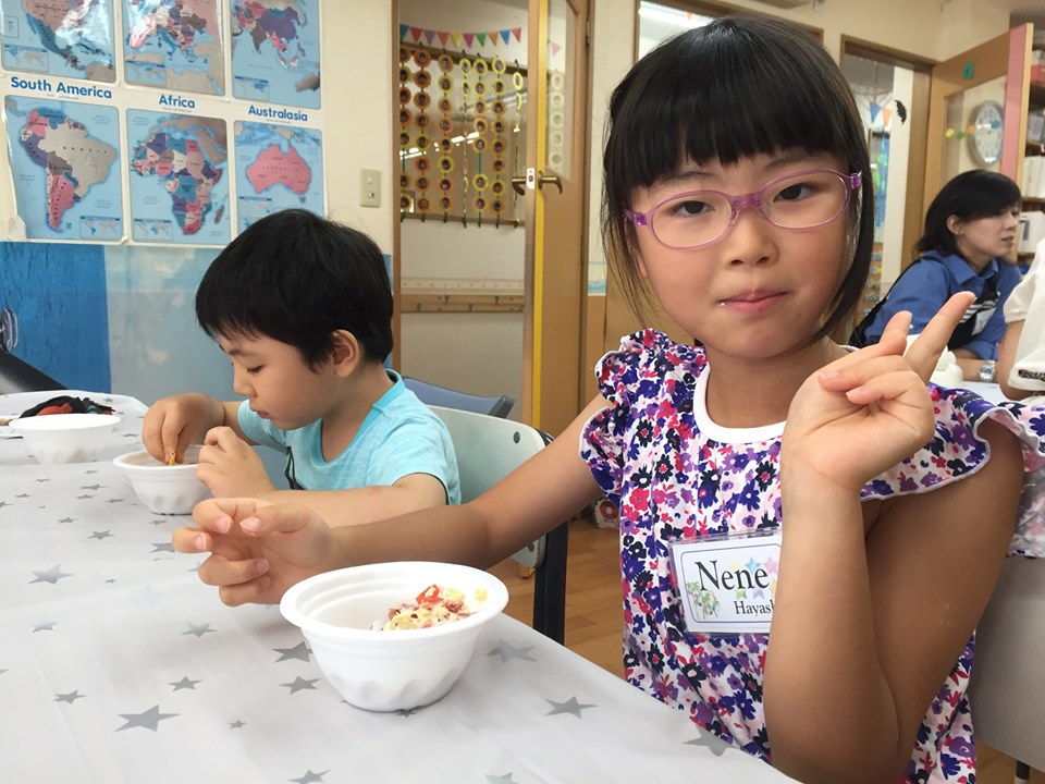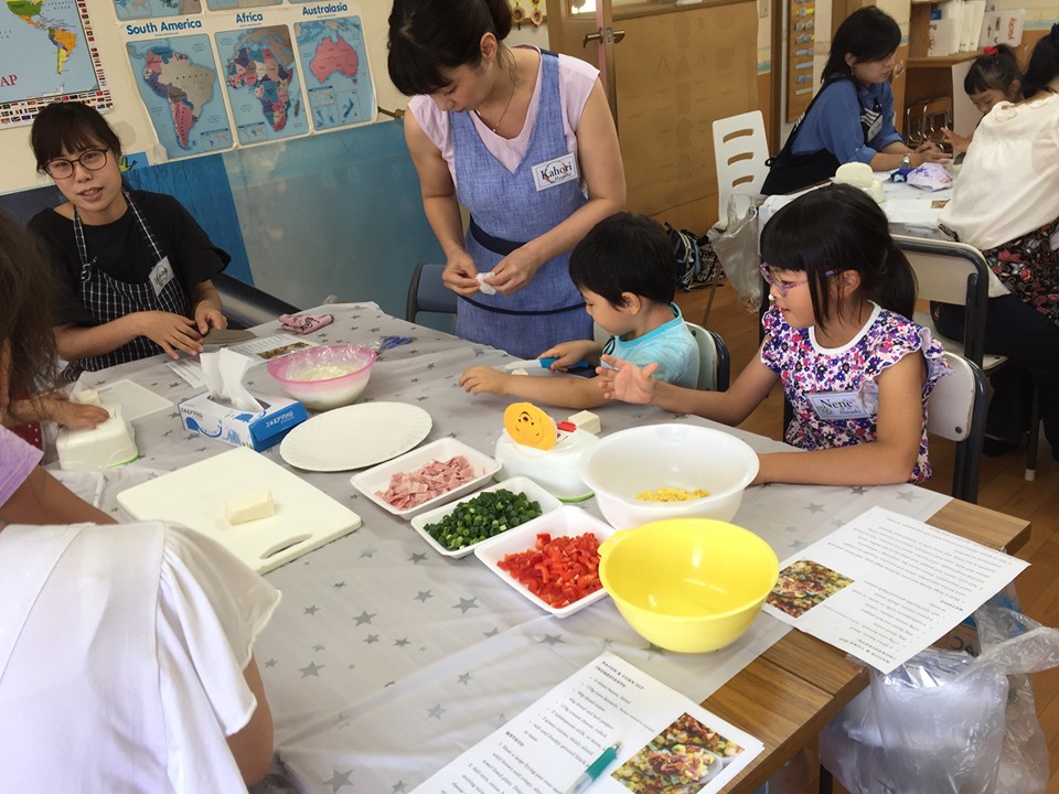 七夕から海の日に変更して、7月15日月曜日 海の日クッキング開催しました。メニュー はベーコンとコーンのディップとアップルクランブル最初は子どもたちが、材料に英語の名札を付けるところからスタートこれで ...