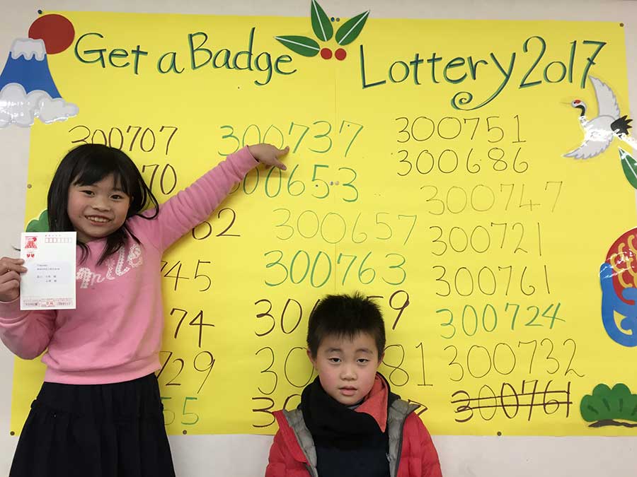 -Get a Badge Lottery 2017-お年玉年賀状抽選会 当選者発表! 第1号の当選者が出ました!! 英検1級合格でご案内したYさん、Kさん姉妹です。 そして昨日、第2号当選者も出ました。 Kちゃん、Tくん兄妹です。 兄 ...