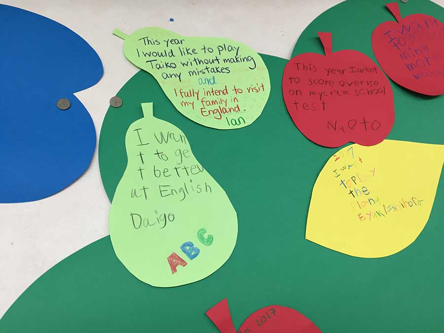 This year's target -2017- 今年の目標を英語で書いて、壁に貼りました。 みんな色々な目標を立てました。 ピアノがうまくなりたい、算数がもっとできるようになりたい、 新しい友達をつくりたい☆英語がじょうず ...