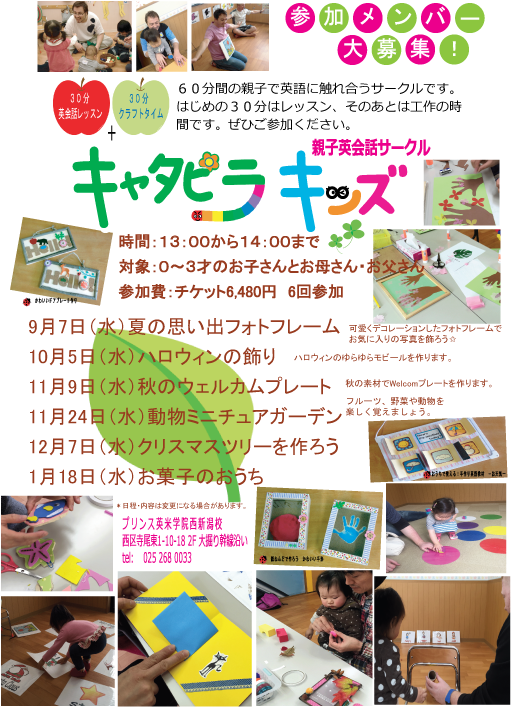 11月キャタピラキッズ 開催しました 11月17日(木) キャタピラキッズ開催しました。 家族の名前、色の言い方を習いました♪♪ 工作は秋のミニチュアガーデン★ ポプリとカラフルな葉っぱや木の実を使って い ...