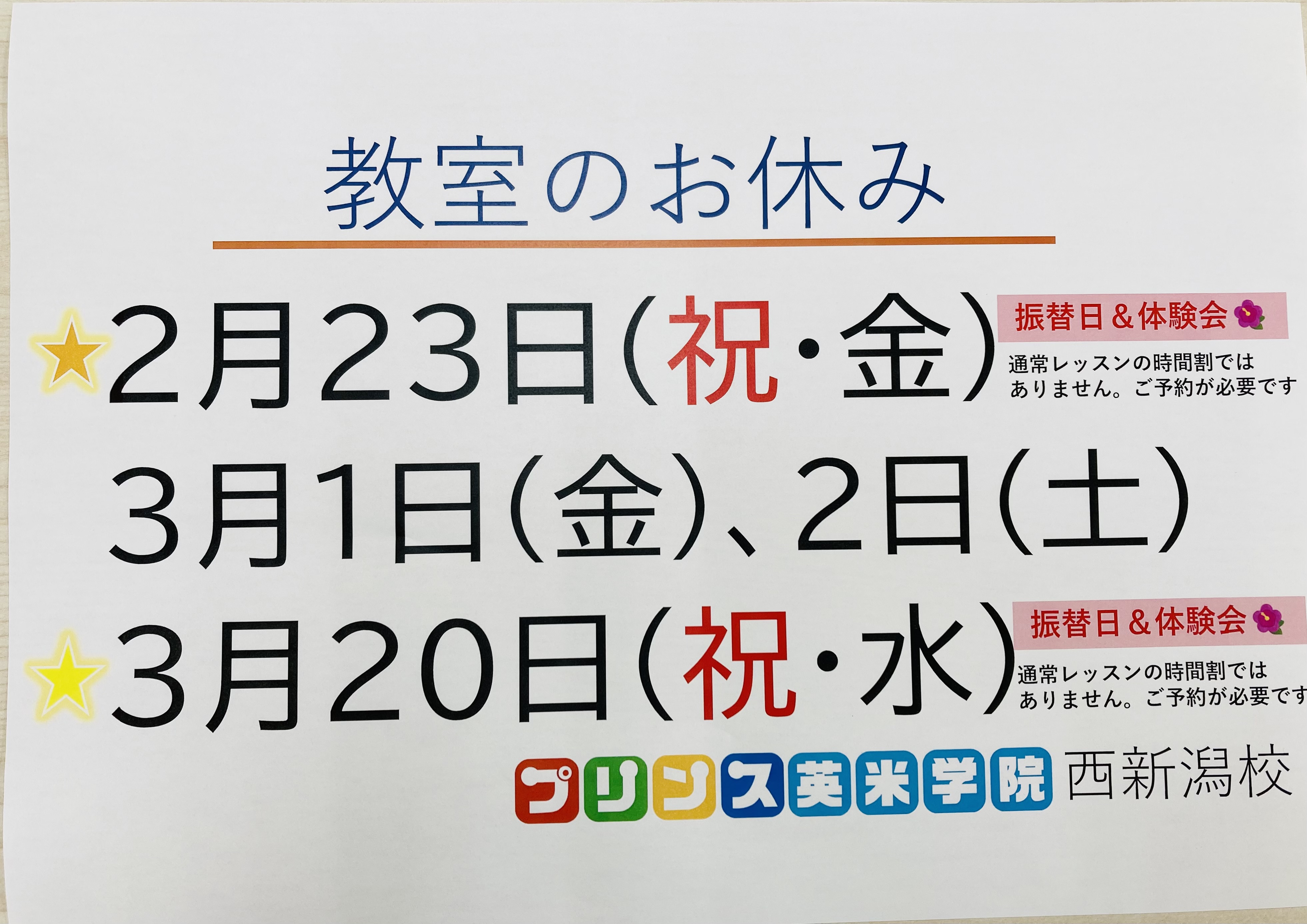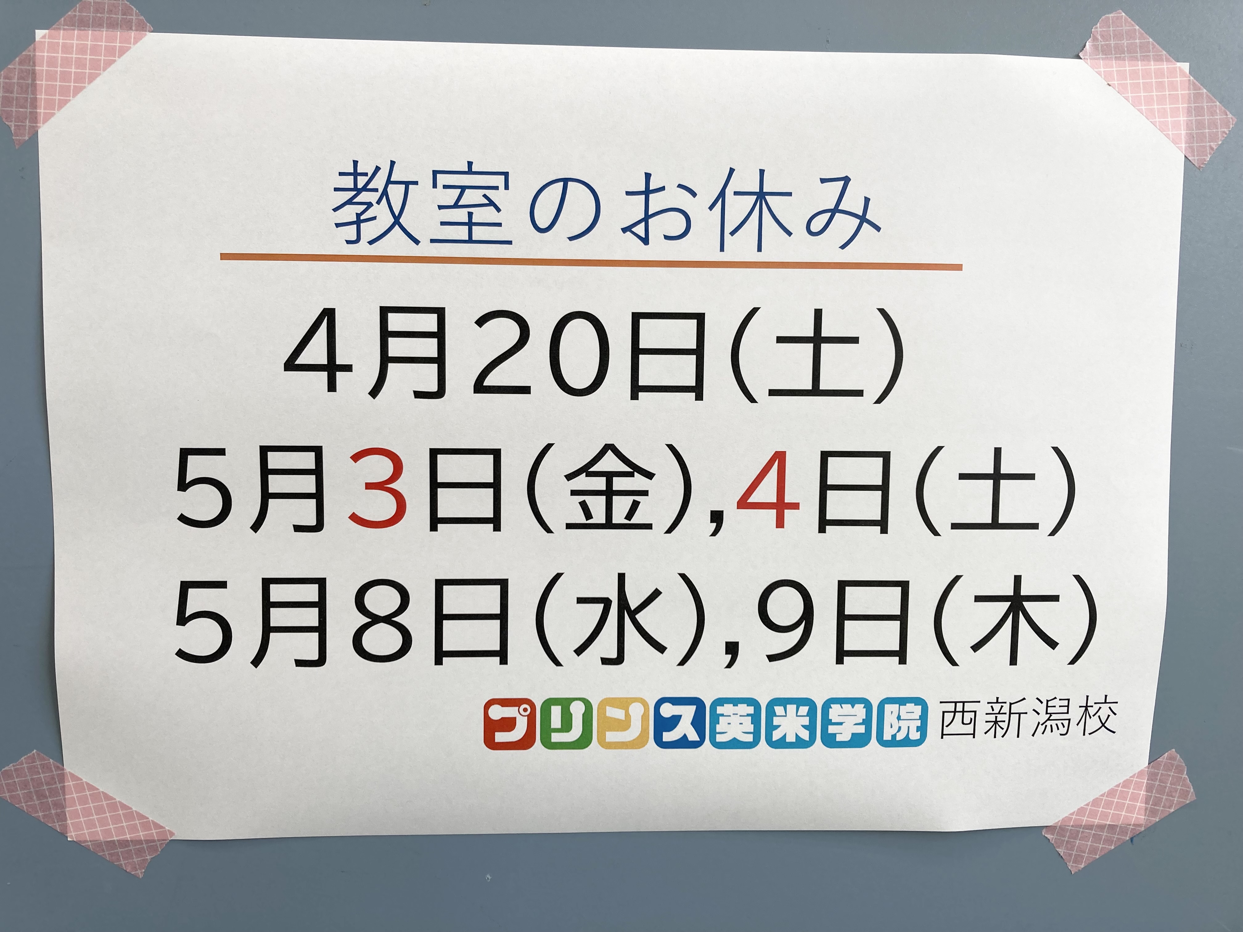 教室お休みのお知らせ📢 🌸4月20日(土)🍀GW期間🍀5月3日(金㊗️)、4日(土㊗️)5月8日(水)、9日(木) 🌸春ですね🌸プリンスの花壇にも色とりどりの花が咲きました🌷💐 ...