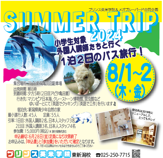 今年の夏は、サマートリップを実施いたします!!! 例年ご好評いただいていた夏の目玉イベントでしたが、コロナによりしばらく中止が続いておりました。。。今年は5年ぶりの実施が決定いたしました♪♬ 久々の募集 ...