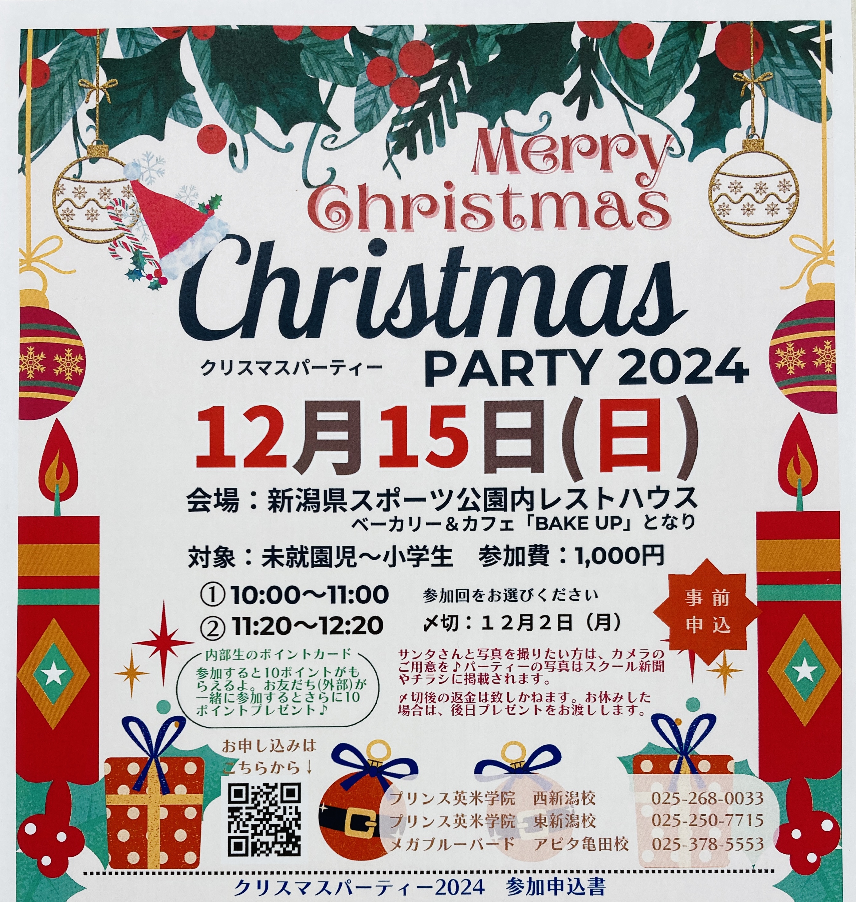 クリスマスパーティー🎅🎉12月15日日曜日開催お申込み受付中です!2部制①10:00〜11:00 ②11:20〜12:20お申し込みの際はいずれかをお選びください。①は未就園児さん、園児さんのお申込みが多数です。②は小学生の ...
