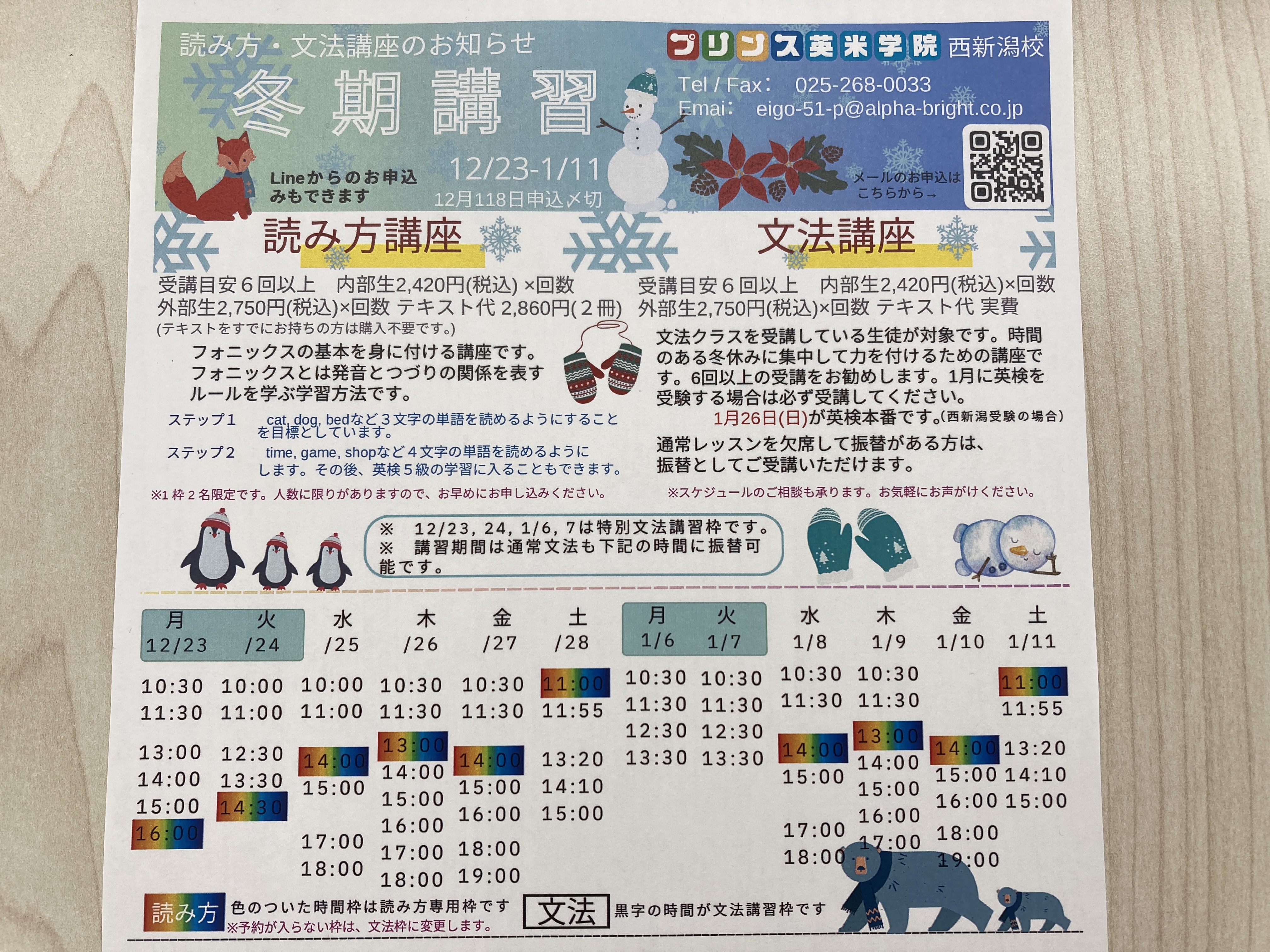 お待たせしました!春期講習のご案内ができました。春休みはお出かけもしたいところですが、同時に英語も頑張っていきましょう!来週より配布開始しますが一足先にこちらでお知らせします🌸右下の pdf をクリック! ...
