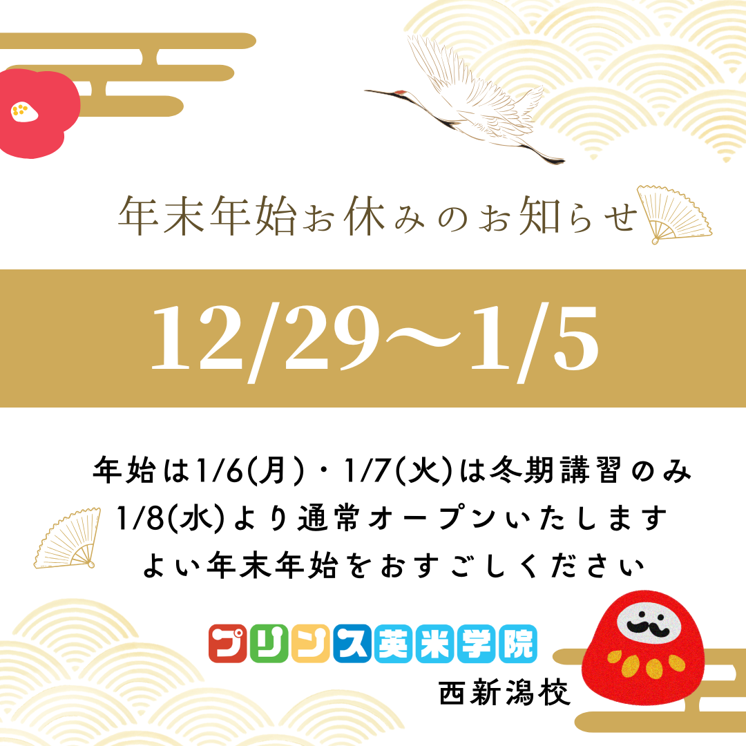 12月の予定:教室のお休みに変更があります○クリスマスパーティー🎉🥳 12/15(日)○冬期講習❄️12/23(月)〜1/11(土)○クリスマスウィーク🎄🎅12/11(水)~14(土)☆お休み変更☆12/6(金) 通常、12/20(金) 休み☆年 ...