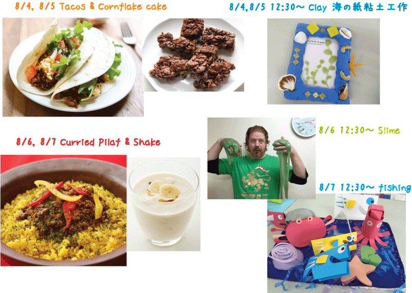 来週のサマースプラッシュのご案内です クッキングは、園児&小学生、そして中学生も参加OK。 工作・実験もご希望の方は中学生も参加OKです♪8/4(火) 午前の部 10:30~ タコス&ライスクリスピー午後の部 12 ...