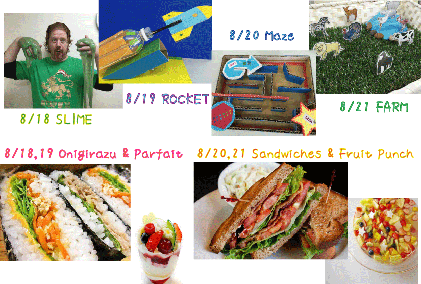 ☆8月18日 Tue ~21日 Fri スプラッシュの様子です☆クッキングはみんな完食、工作はみんなクリエイティブな才能を発揮してユニークな作品ができました♪8/19(水)午前の部 10:30~ おにぎらず&パフェ ...