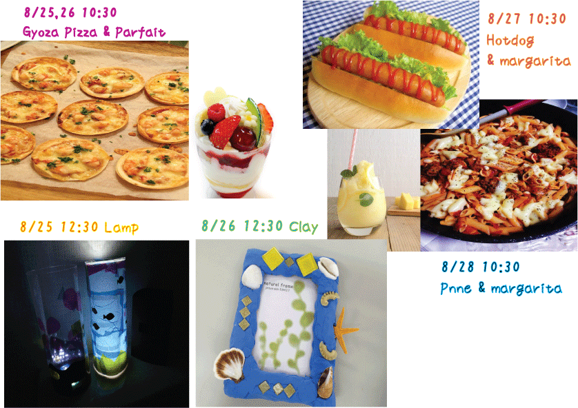 ☆8月25日 Tue & 26日 Wed スプラッシュの様子です☆クッキングはみんな完食、工作はみんなクリエイティブな才能を発揮してユニークな作品ができました♪8/25(火)午前の部 10:30~ Gyozaピザ&パフェ ...
