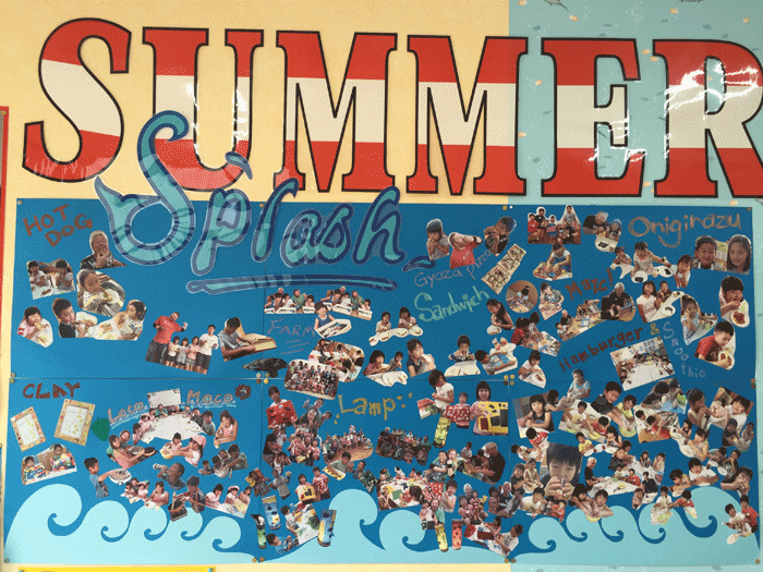 プリンスの入り口にサマースプラッシュの大きなフォトコラージュが完成しました!! 今年もサマースプラッシュのご参加ありがとうございました。英会話レッスン+クッキング、工作、実験、大盛況でした♪♪また来年 ...