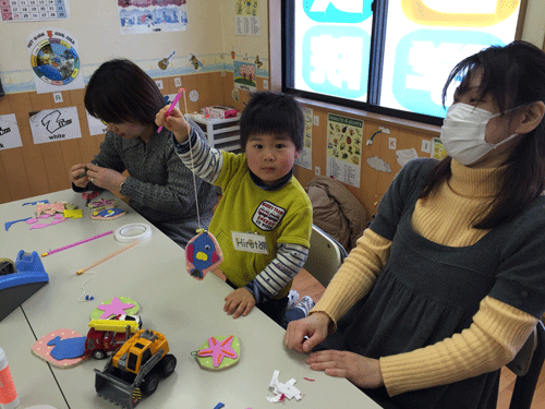 今日は月に1度のキャタピラーキッズの日でした。メンバーの皆さんがたくさん集まってくれました。最初の30分は、絵カードや歌の英会話レッスン、後半はクラフトタイムです。1月のテーマは「魚の飾り」。お母さん ...