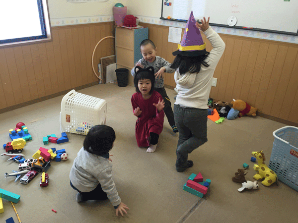 Kindyの英会話クラス、ランチの後のビデオタイムです。ソファに仲良くくっついて座りながら、みんなが大好きな"Kipper the dog"を見ています♪ビデオはゲームタイムで、今日は輪投げをしながらフラッシュカードのリ ...