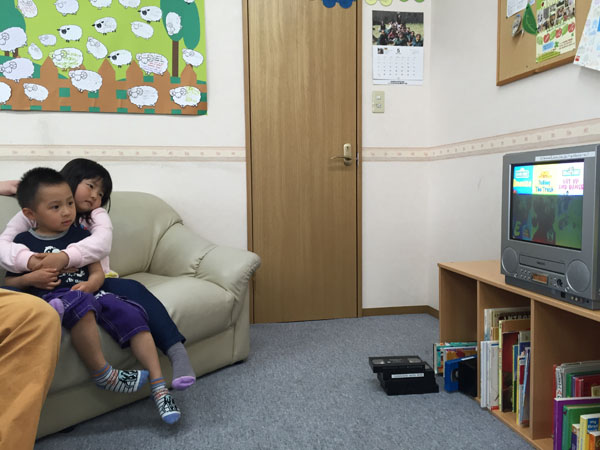 今日のKindy英会話クラスのビデオタイムでは、場所の取り合いでちょっともめました。でも、すぐに仲直りをして、こんなにくっついてビデオを見ていました♪♪ビデオは子供たちの好きなリーディングタイムです。先生 ...