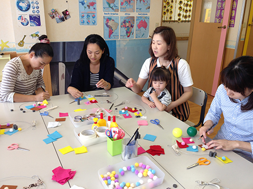 英会話サークル「キャタピラキッズ」の様子をご紹介します。前半30分は外国人講師による親子英会話レッスン。後半30分はお母さんたちは工作、子供たちが外国人講師と遊びます。今月9月は、フォトフレームならぬ ...