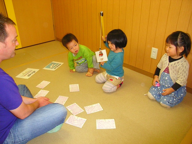 朝10時半からは2~3才児対象のキンディクラスを行っています。今日のレッスンのテーマは乗り物!バスや電車など身近な乗り物をたくさん習いました。カードで単語を習った後は、体を動かしながらゲームをして、その習 ...