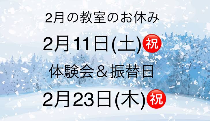 2月教室のお休み🌹2月11日㊗️土曜日 🌹2月23日㊗️木曜日無料体験会を開催❗️英会話、プログラミング、英文法の体験ができます✨ご予約お待ちしております😊 通常の時間割ではありませんので、振替出席の内部生は ...