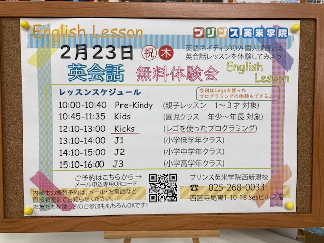 東新潟校では、毎年恒例の学童説明会を開催します!来年度に新一年生になる方、新二年生以上でも『英語de学童』が気になる方、そしてプリンスの英会話レッスンに興味がある方は、ぜひお気軽にご予約ください♪ 日に ...