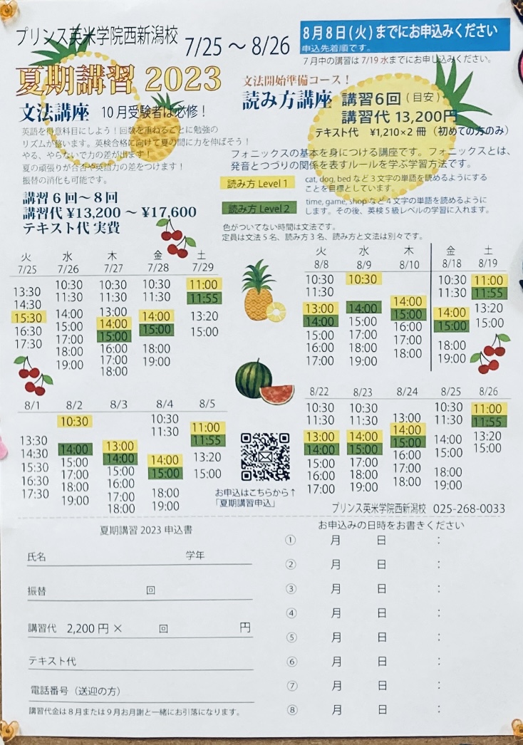 夏期講習スタートWelcome to Prince!7/25火曜日から夏期講習が始まります。教室に通っていない方でもOKです!夏期講習のみの受講もできます👌英語に全く触れたことがない方もぜひトライを!ゼロからのスタート ...