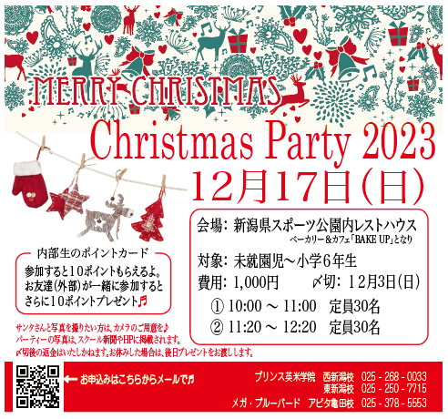 今年も気づけばあっという間に11月も終わりですね…街はクリスマスムード一色🎄ということで!プリンスでは今年もクリスマスパーティーを開催します🌟🌟 日にち:12月17日(日)時間 :①10:00~11:00 / ②11 ...